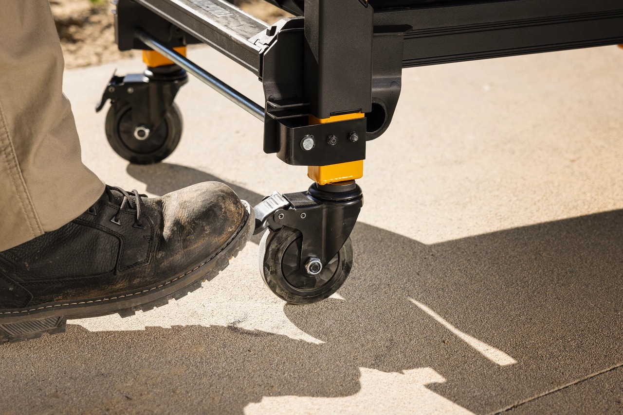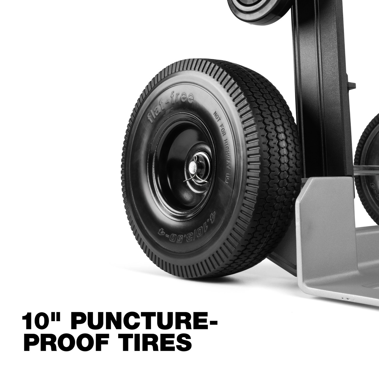 ・10インチノーパンクタイヤとインダストリアルグレード4インチロック付きキャスターを採用。