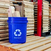 中央に大きなRECYCLEマークがついた、再利用できる資源や資材入れとして使えるリサイクルバケツ。