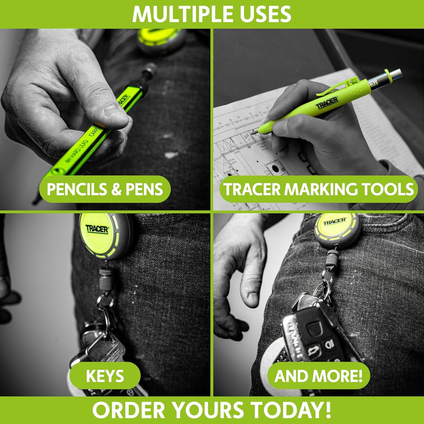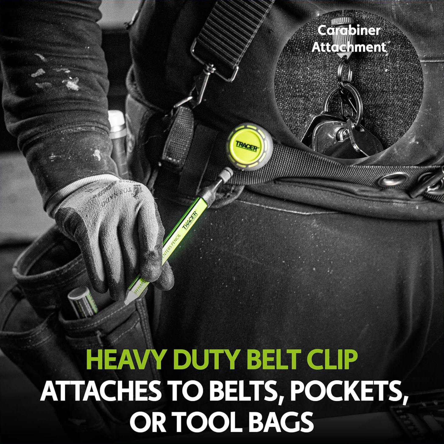 ■耐衝撃性ラバーでコーティングされた樹脂製ボディと、金属製ヘビーデューティークリップ。