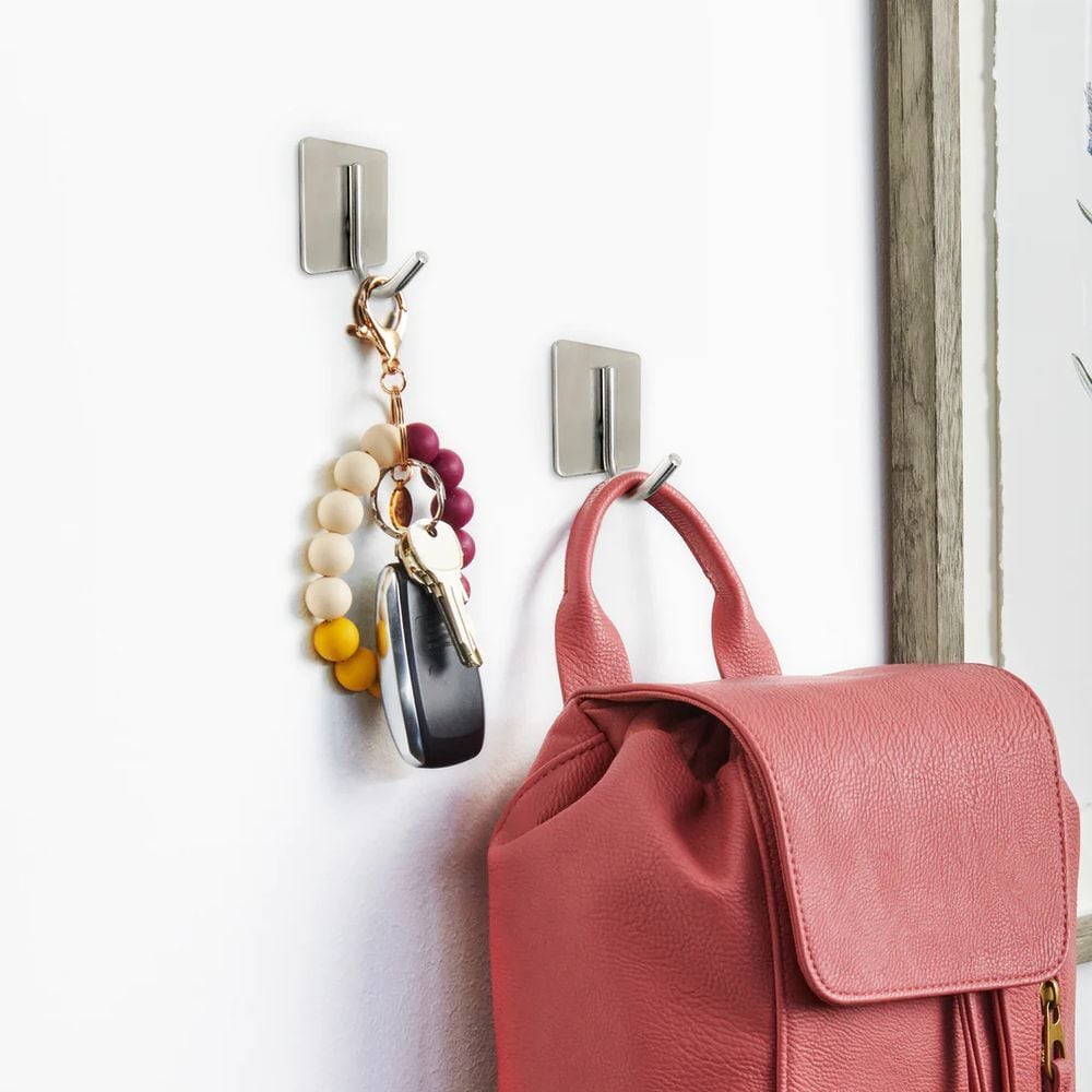 上着やバッグ、帽子などの壁掛け収納に必須なフックセットです。どんな場所にも似合うシルバーカラーとフラットなデザイン。あらゆる場所をワンタッチで荷物置き場に変身させます!