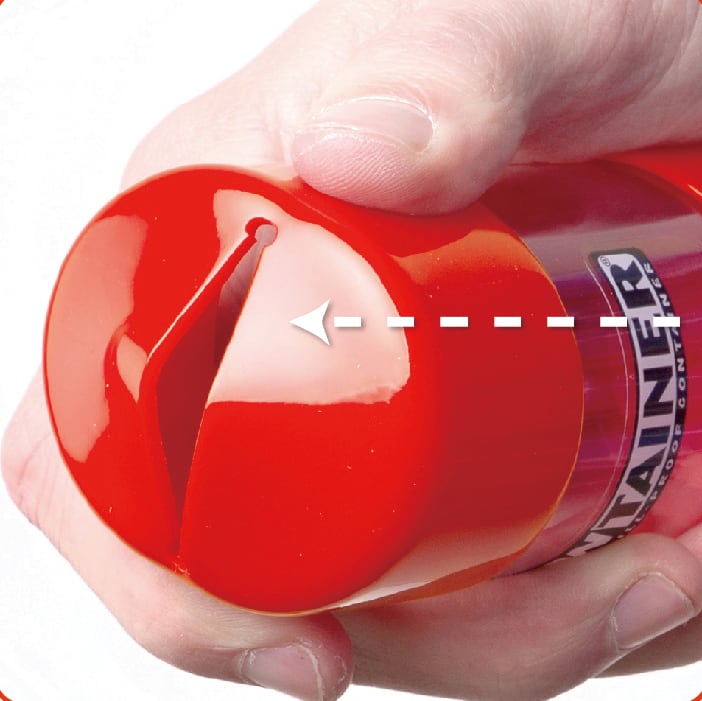 ■スリットの入った蓋部をスクイーズするだけで簡単に中身が出し入れ可能なマルチコンテナ。