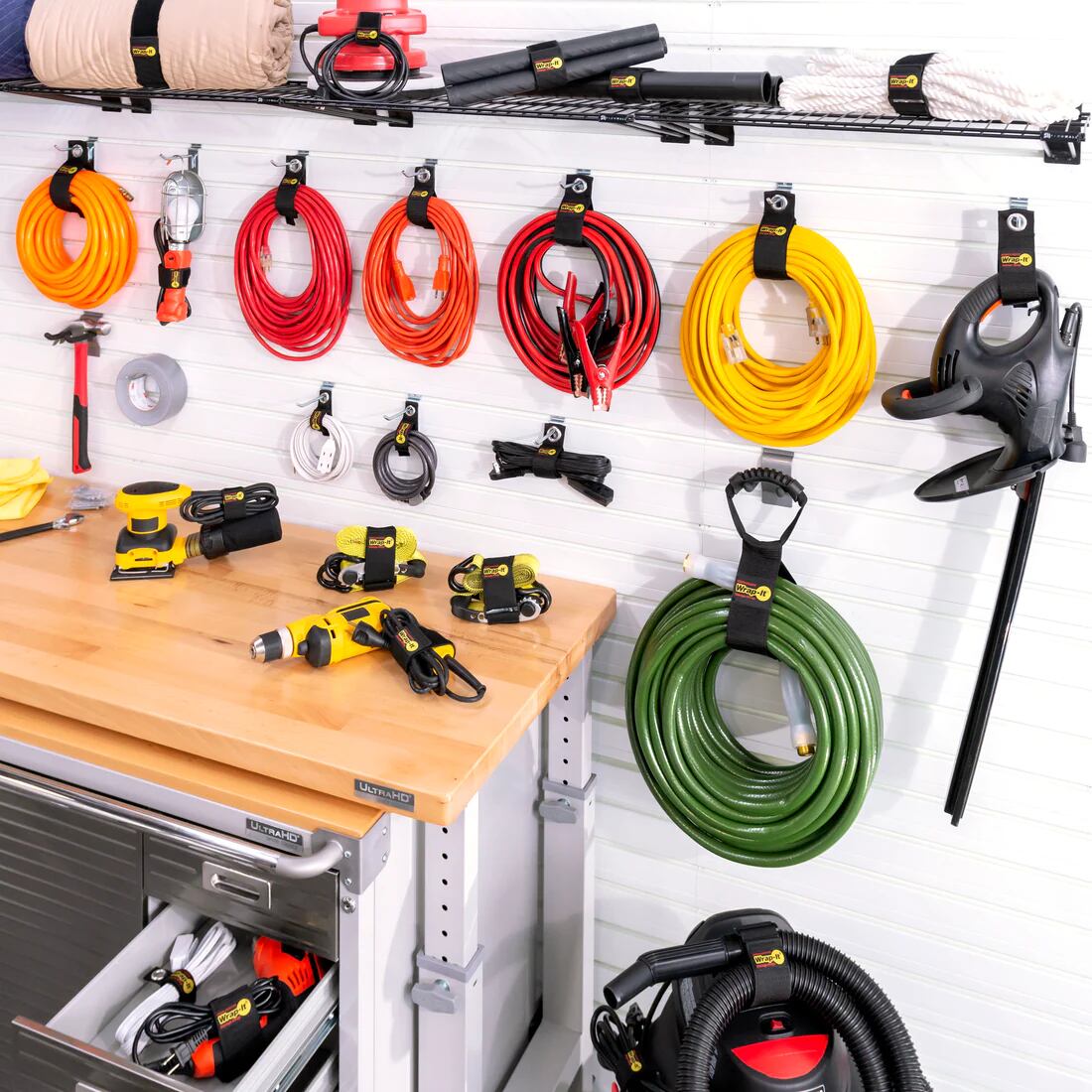 ■コードやホース、ロープなどを整理できて吊下げ保管可能。