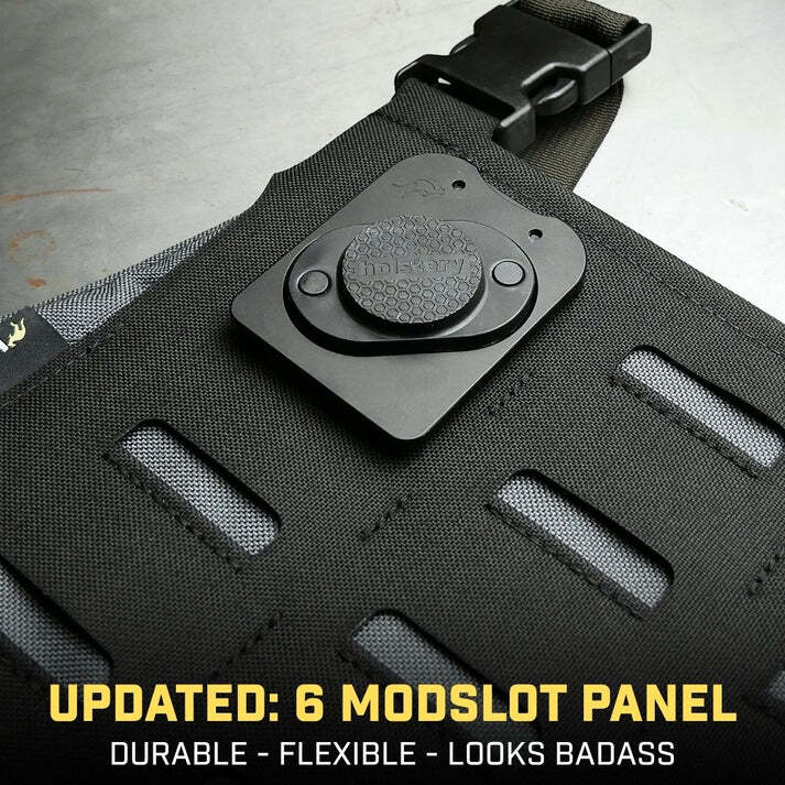 ■6 つのHolsteryツールホルダー用スロットを備えたボディ部には、通気性のあるメッシュライナーを備えた1000D Corduraを採用。